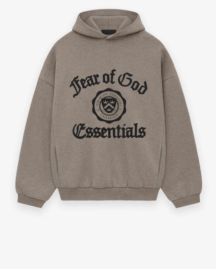 Essential Heavy Heather Gray Fleece Hoodie Black Font